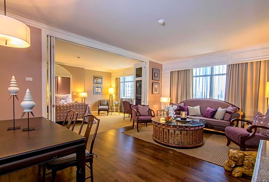 Located on the upper floors in the Siam Main Wing, this Siam Suite features a spacious living room with a dining table. Designed with Thai esthetics, this suite offers views over Bangkok's skyline and includes 2 LCD TVs, computer-to-TV connection, free Wi-Fi.